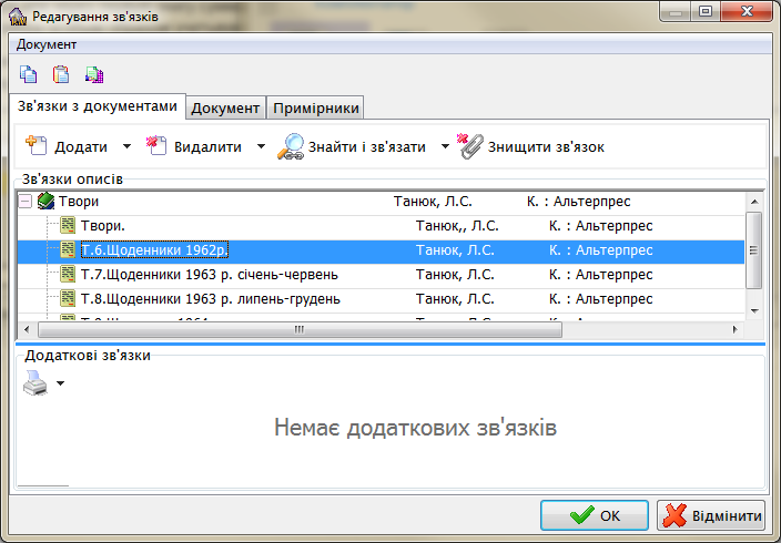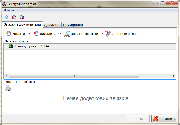 Работа в этом режиме напоминает создание многоуровневого описания в режиме ретроввода. Но начинаться должна с поиска дублетного описания с помощью оконного меню «Документ – Пошук існуючого документу (дублету)» (либо кнопка «Знайти дублет», либо функциональная клавиша клавиатуры F9). Если такое описание будет найдено – дальнейшие физические единицы должны быть созданы в существующей структуре. Иначе надо заполнить поля верхнего описания и создать от него структуру документа до физической единицы. В случае если необходимо добавить экземпляры к существующему описанию – требуется выбрать в структуре это описание и нажать кнопку ОК. При создании физической единицы будет показано окно ввода первичной информации как при вводе однотомного издания.